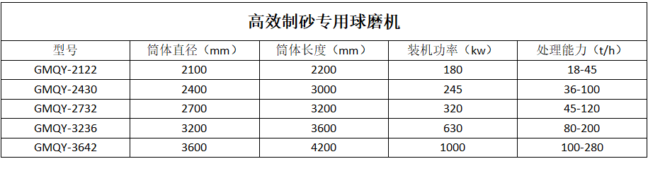 传统湿法制砂设备多选用棒磨机,但在生产过程中容易出现乱棒,钢耗高等缺点。本公司根据多年的生产经验,研发并成功应用的高效制砂专用球磨机取代棒磨机,相对比相同规模的棒磨机产能提高近50%,过粉率下降了10%,钢耗下降200%,经济效益明显提高。