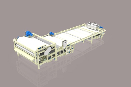高效泥浆脱水机是在本公司多年承建细物料矿浆脱水工程中发现应用传统的带式真空过滤机及压滤机时发现一旦物料较细或含泥量较高时,因其在真空抽力或外加压力的作用下,细颗粒或细泥很快堵塞滤孔进而在过滤介质表面形成阻隔膜,导致不论真空抽力或压力多大均不起作用进而本公司从美国引进先进技术,经消化吸收,成功开发的一种细粒物料特别是泥浆高效脱水设备。